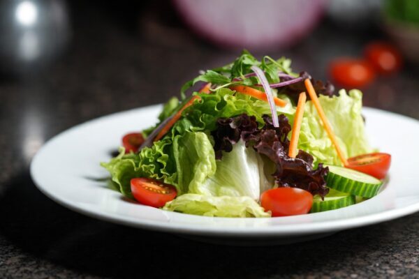 Я подала вечерю: голубці з м’ясом і рисом, вареники з картоплею, тушковану капусту й легкий салат зі свіжих овочів.